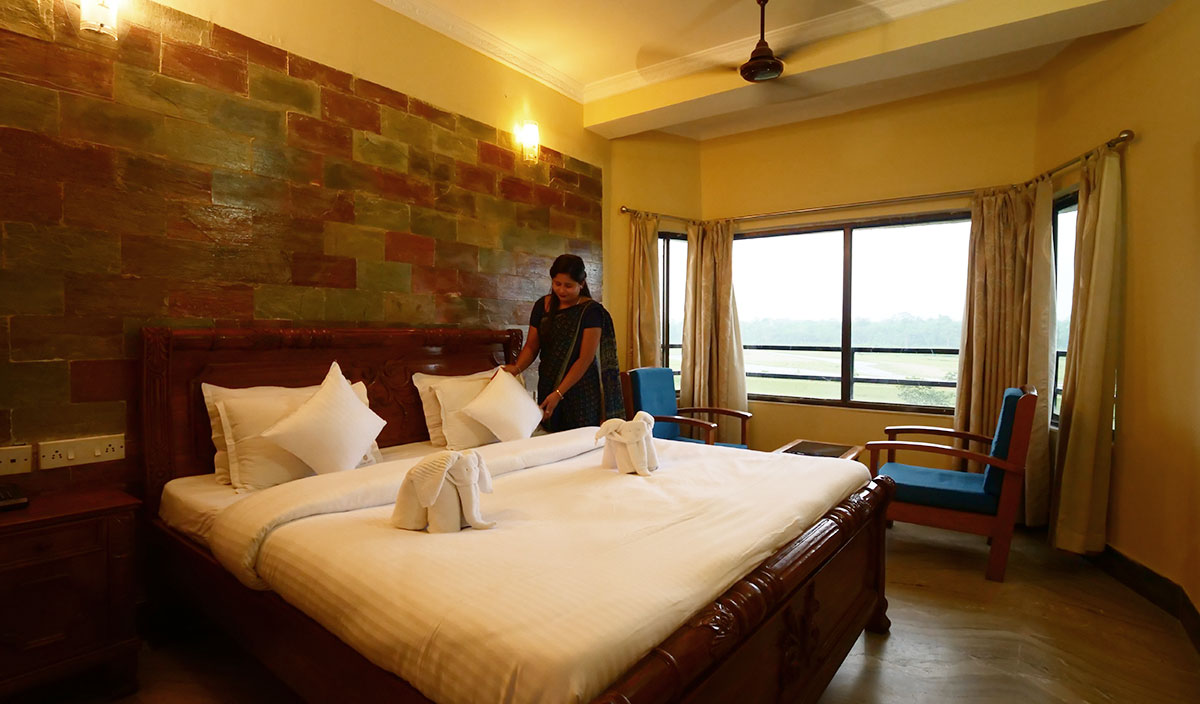 Our elegant deluxe rooms are just beyond your imagination and surpass your expectations. The rooms are designed with modern nostalgic glamour in mind. These are situated on the second & third floors and provide a soothing surrounding view, one of the best from the premises.